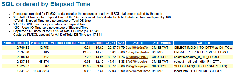 Check "SQL ordered by Elapsed Time"